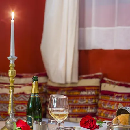 Riad Azoulay a un petit-déjeuner continental quotidien pour les clients et il est servi au restaurant. Cet hébergement invite les invités à prendre un verre dans un bar piscine. La table de Marrakech sert différents types de plats du moyen-orient assez proche de cette propriété.