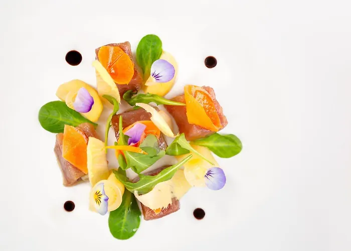 Gasten kunnen van Mediterrane maaltijden bij Le Jardin genieten binnen 5 minuten lopen van de accommodatie.